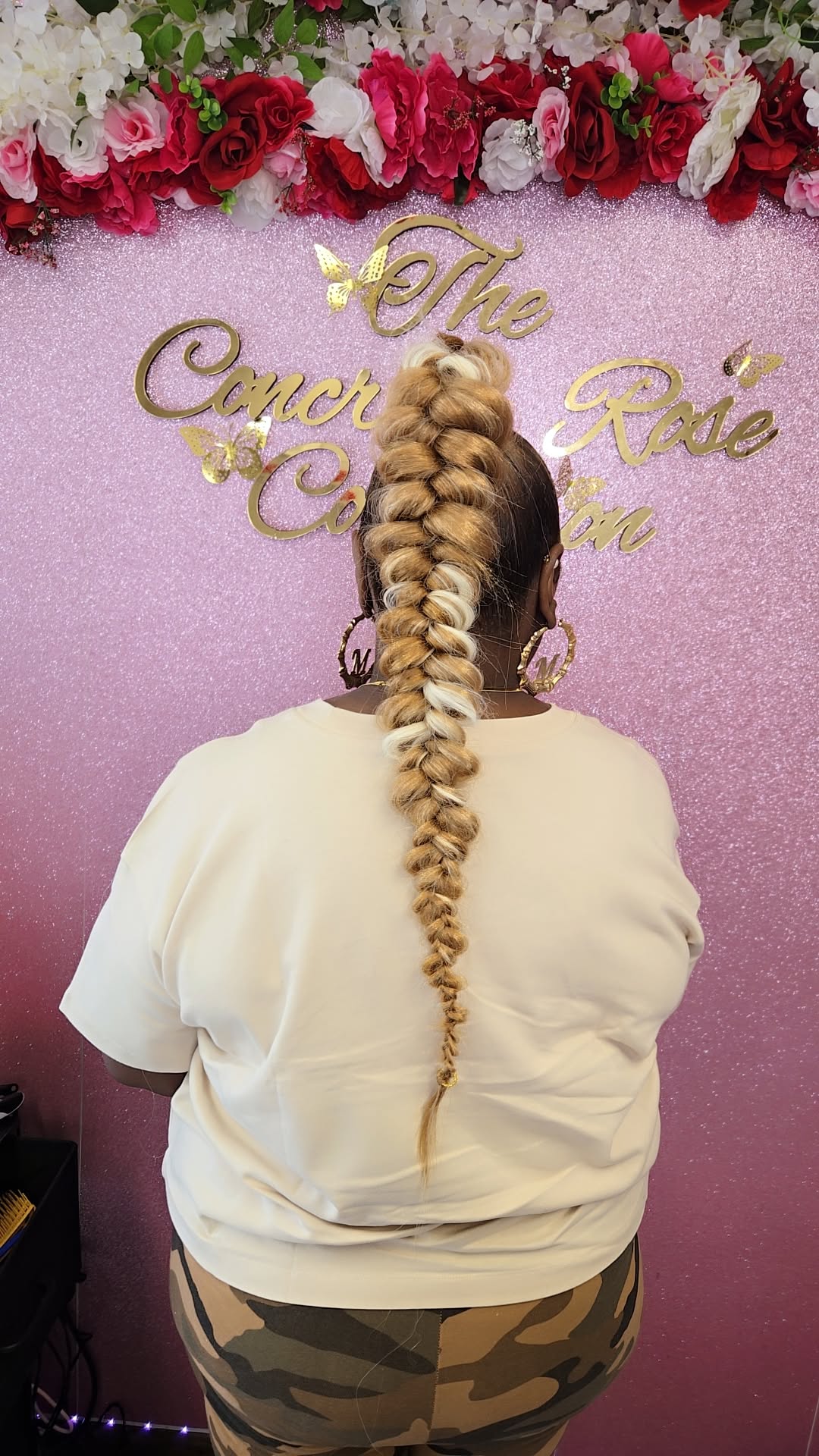 This service includes a blow-out and press on your natural hair and a sleek finish paired with the braided ponytail style of your choice. Client’s hair must be relaxed. Hair not included.